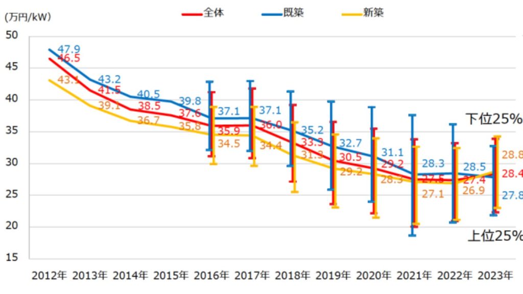 太陽光システム単価:25~35万円/kW